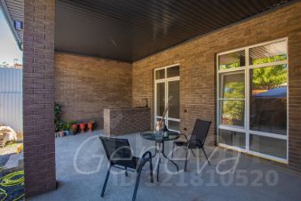 г.Ростов-на-Дону, ''золотой квадрат'' Западного жилого массива.Общая площадь строения 185 м2, решено в один этаж с высотой потолков до 7 метров. Планировка: гостиная и кухня-столовая, гостевой санузел, гардеробная для сезонных вещей, две спальные комнаты, ванная, гардеробная, спортзал, бойлерная, внесезонная веранда с мангалом, санузлом и душевой.Дом в отличном состоянии, без износа!!! Дорогостоящий, дизайнерский ремонт.Все коммуникации центральные, включая канализацию.