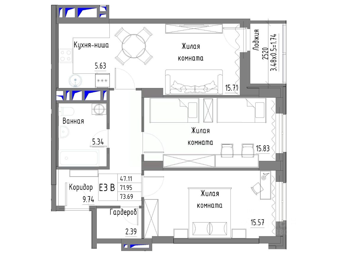 Трехкомнатные