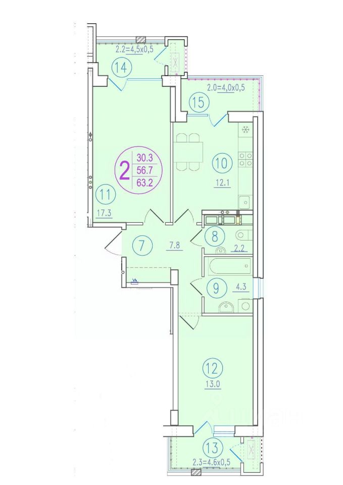 63 м² · Этаж 9 из 24