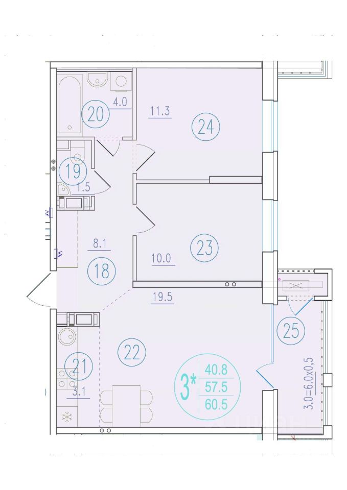 60 м² · Этаж 3 из 24