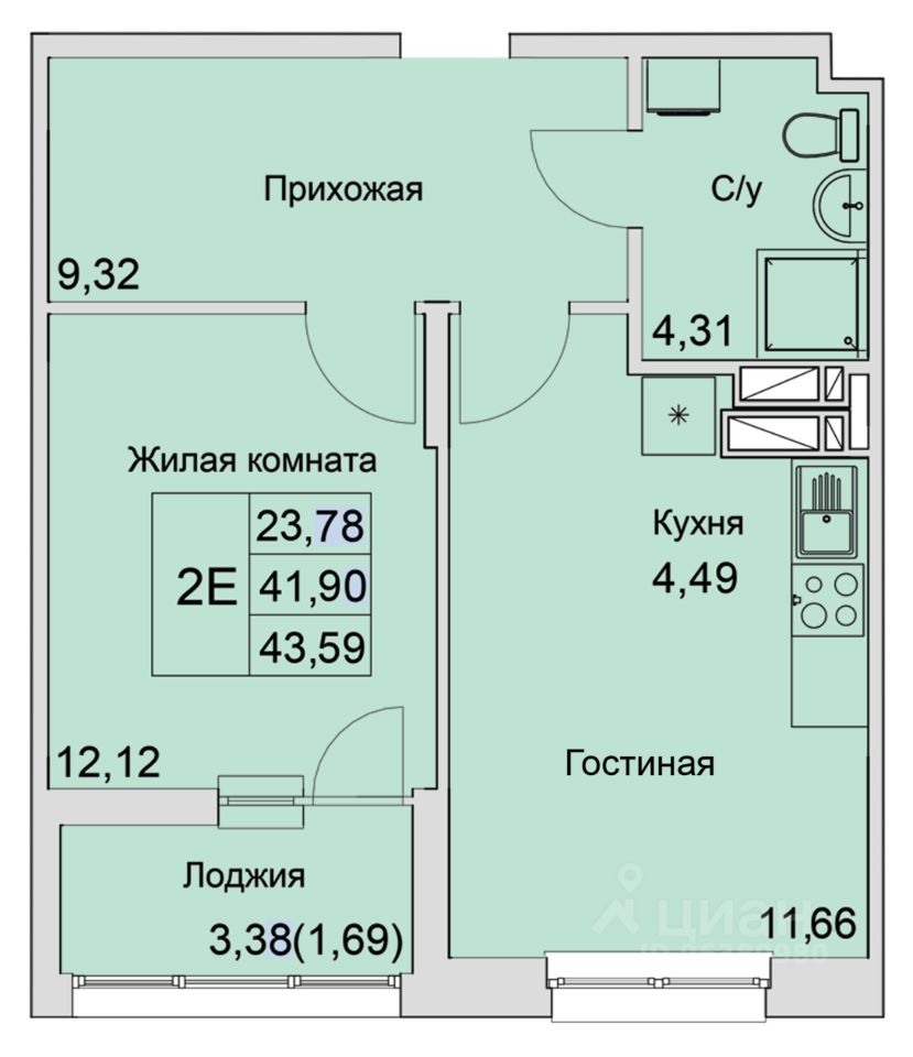 59 м² · Этаж 21 из 23