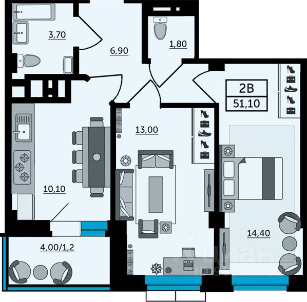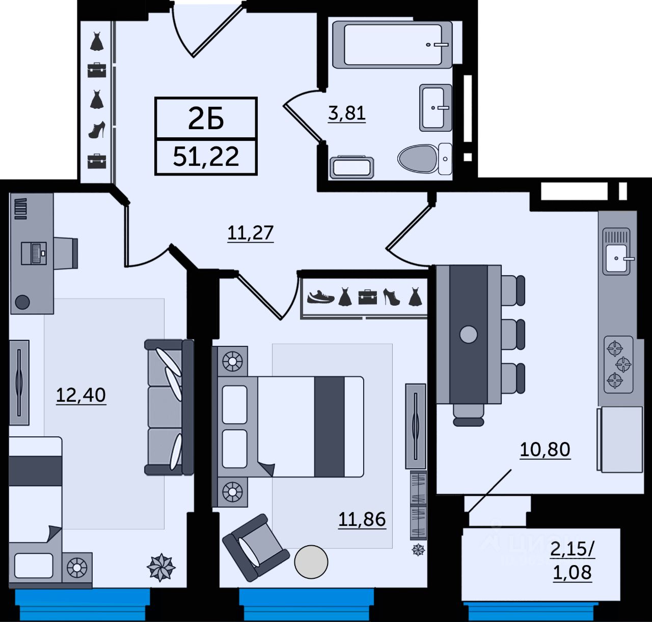 51 м² · Этаж 23 из 25