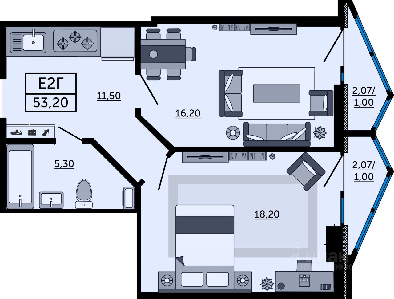 53 м² · Этаж 22 из 24