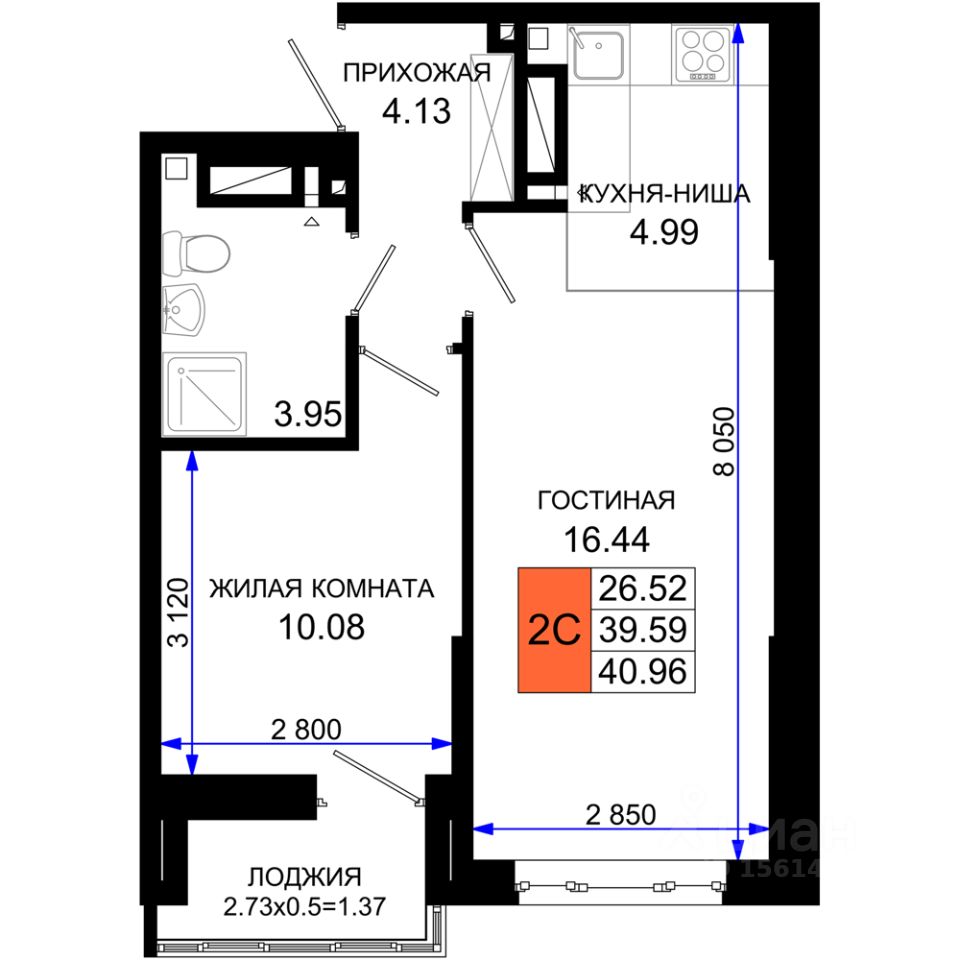 40 м² · Этаж 15 из 25