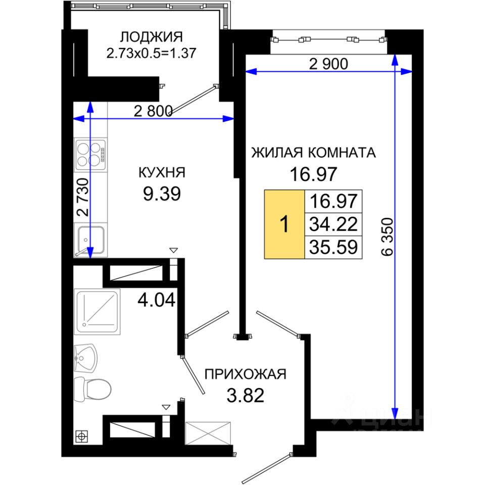 35 м² · Этаж 6 из 25
