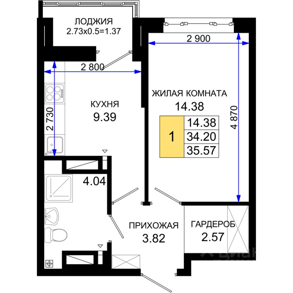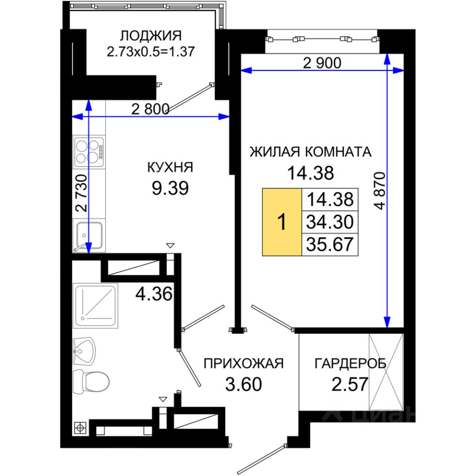 35 м² · Этаж 9 из 25
