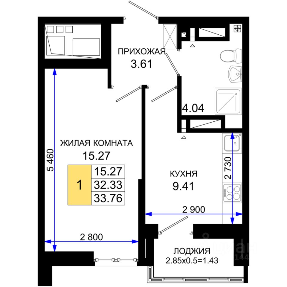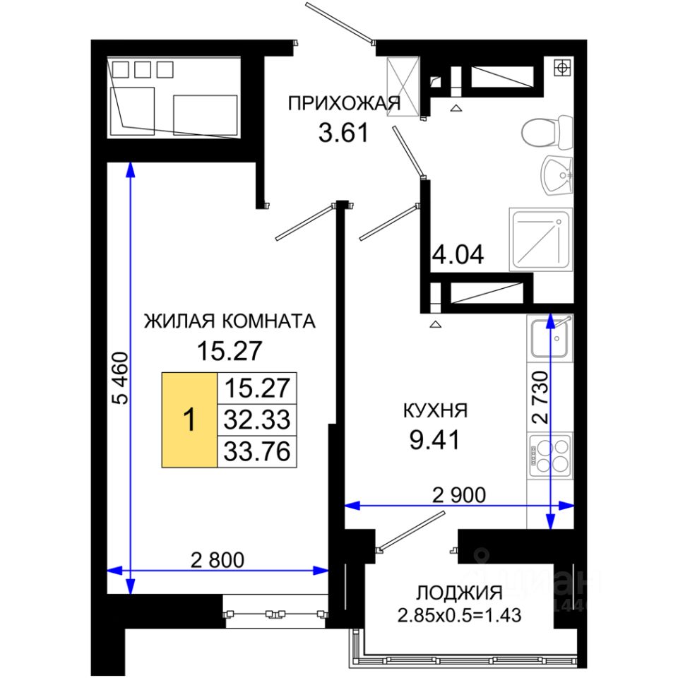 33 м² · Этаж 15 из 25