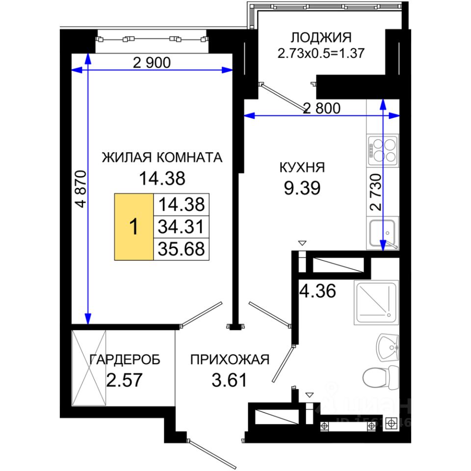 35 м² · Этаж 9 из 25