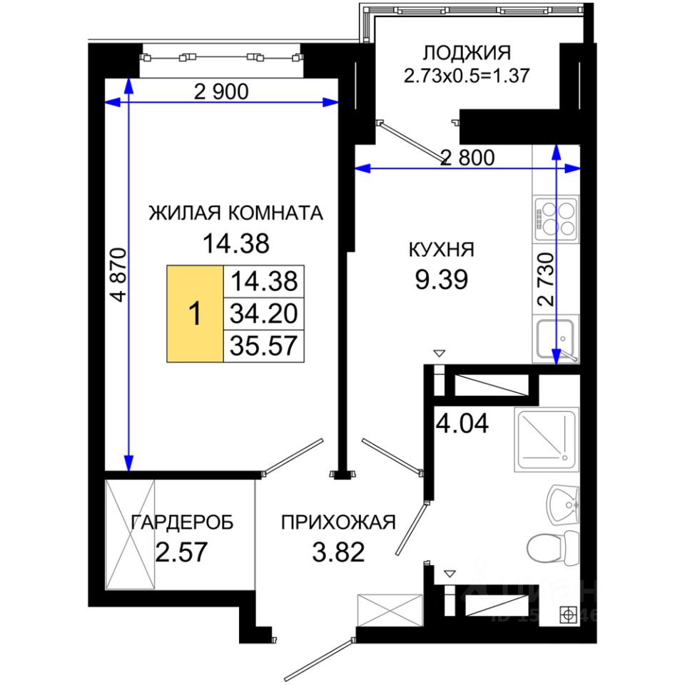 35 м² · Этаж 15 из 25
