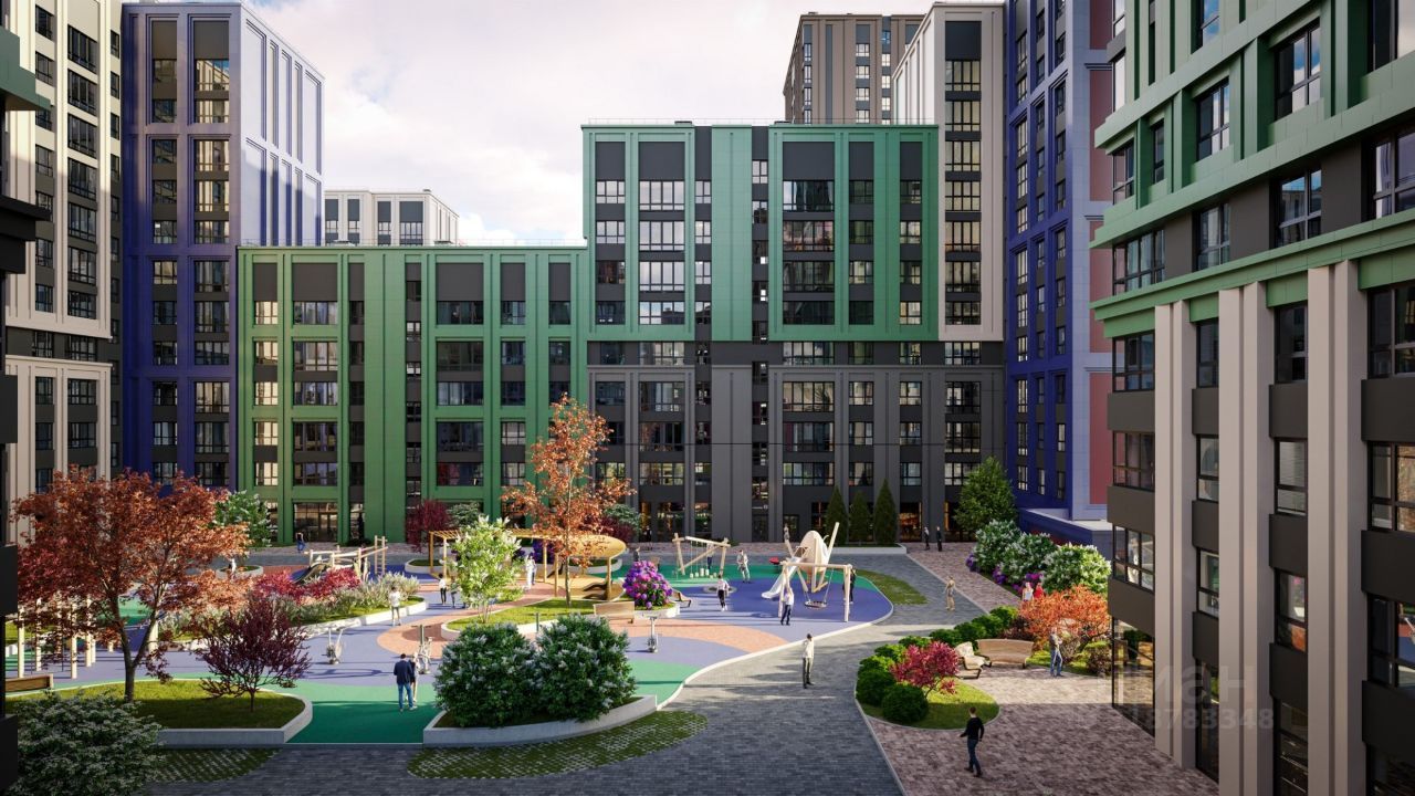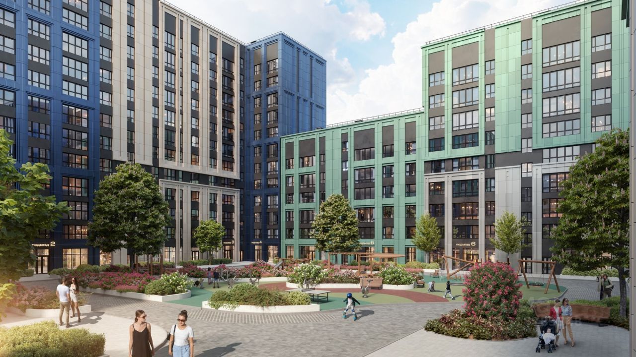 квартиры с интеллектуальными системами управления, умные домофоны с распознаванием лиц собственный парк площадью 35 000 кв.м. придомовая территория поделена на функциональные, природные и детские зоны строительство с использованием технологии вентилируемого фасада и архитектурной подсветкой