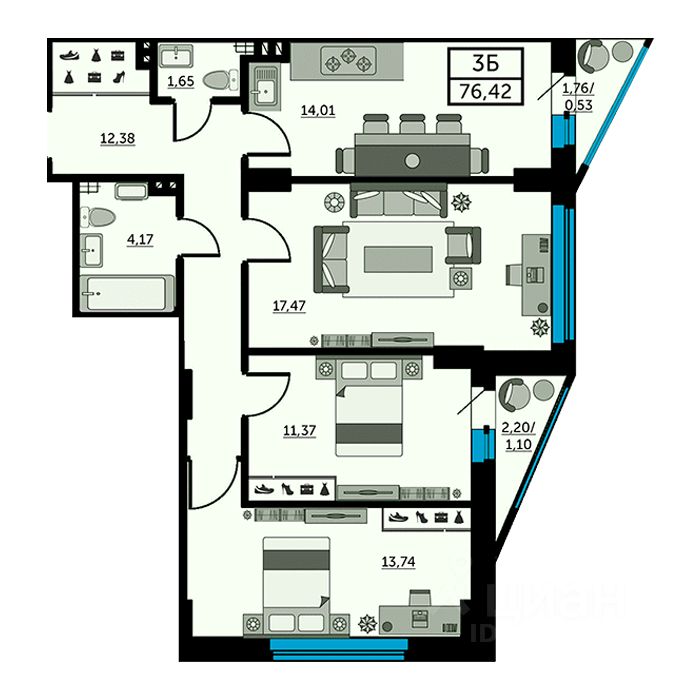 76 м² · Этаж 18 из 25