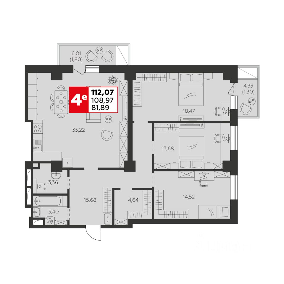 112 м² · Этаж 3 из 22