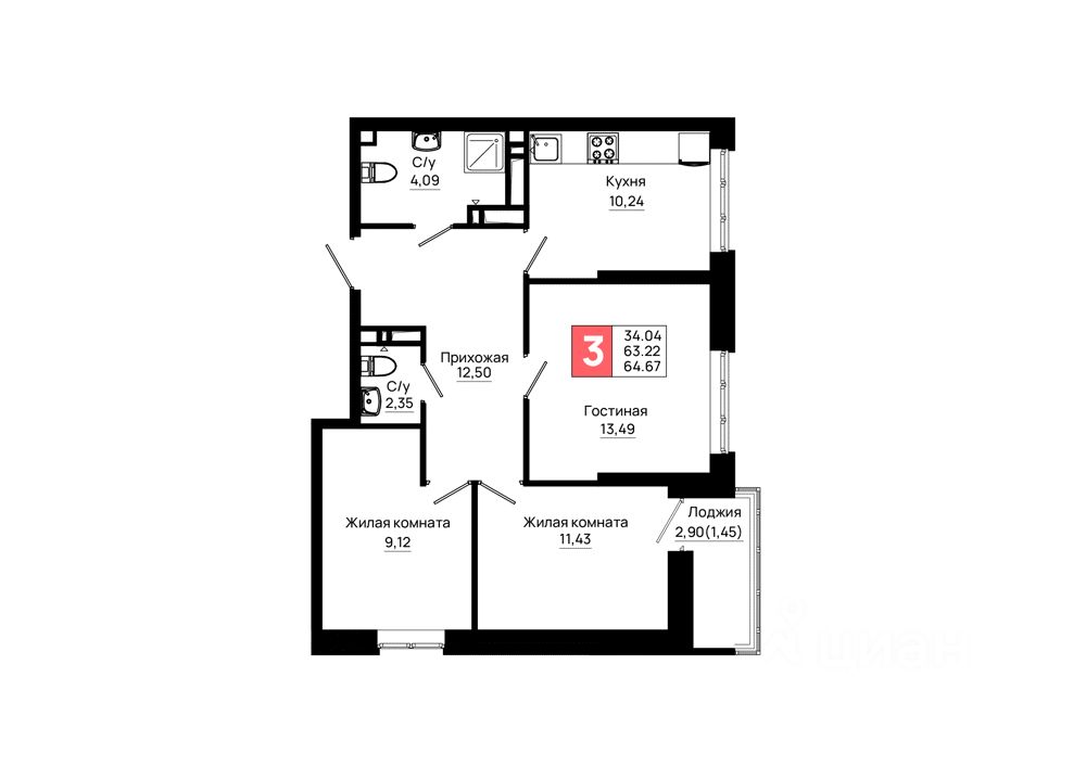 64 м² · Этаж 9 из 25