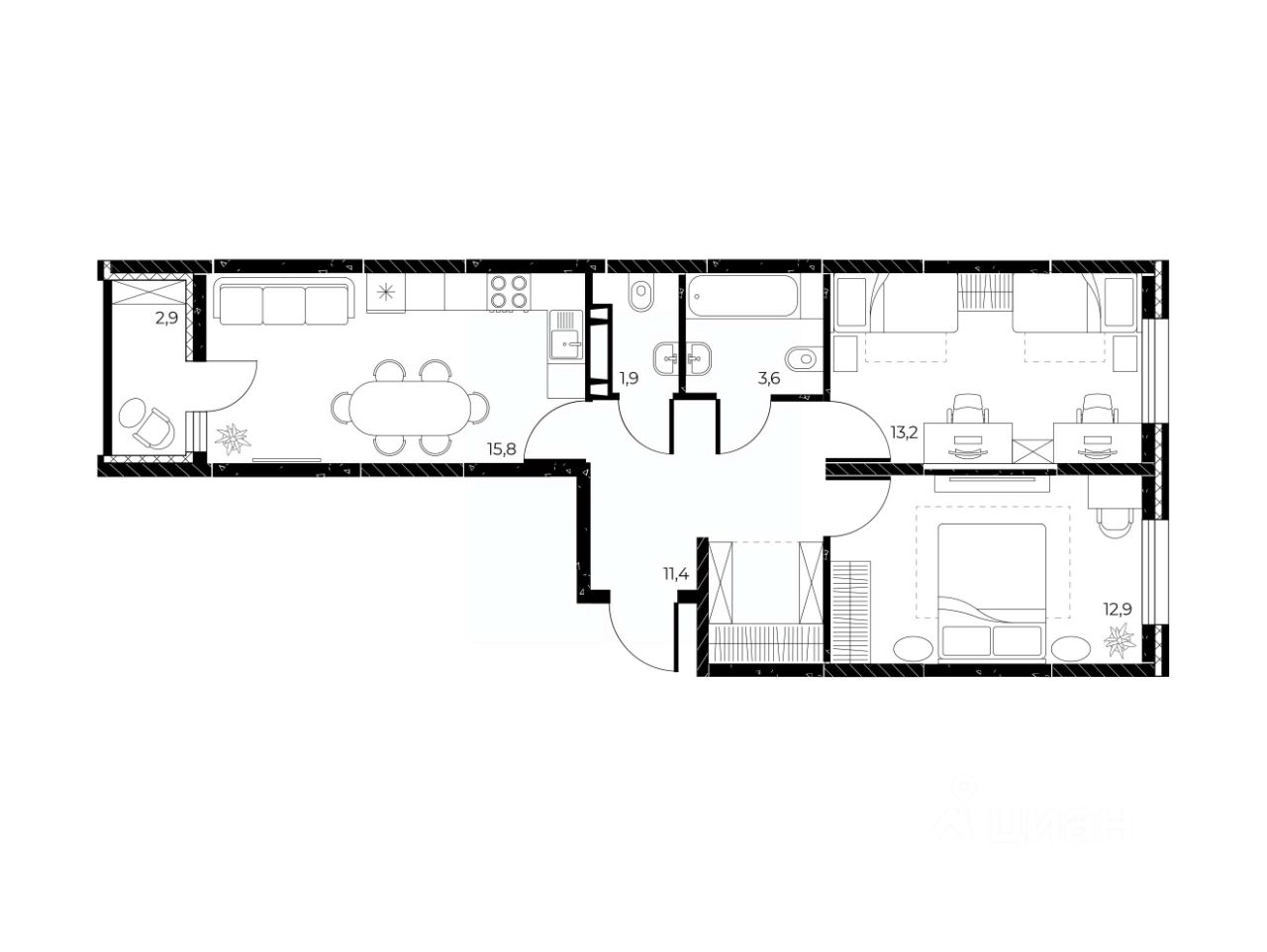 Трехкомнатные