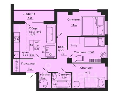 76 м² · Этаж 18 из 25