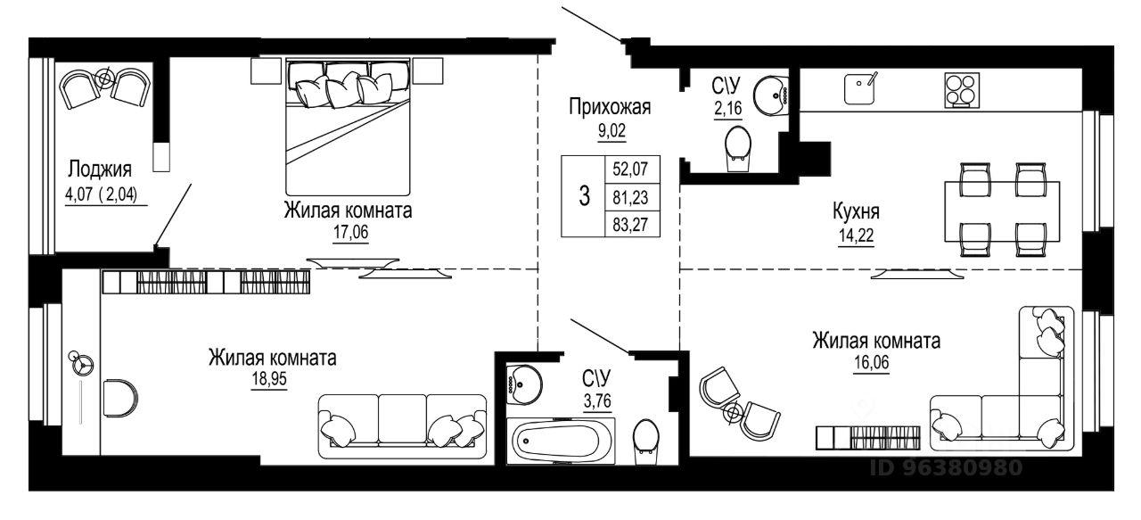 83 м² · Этаж 20 из 26