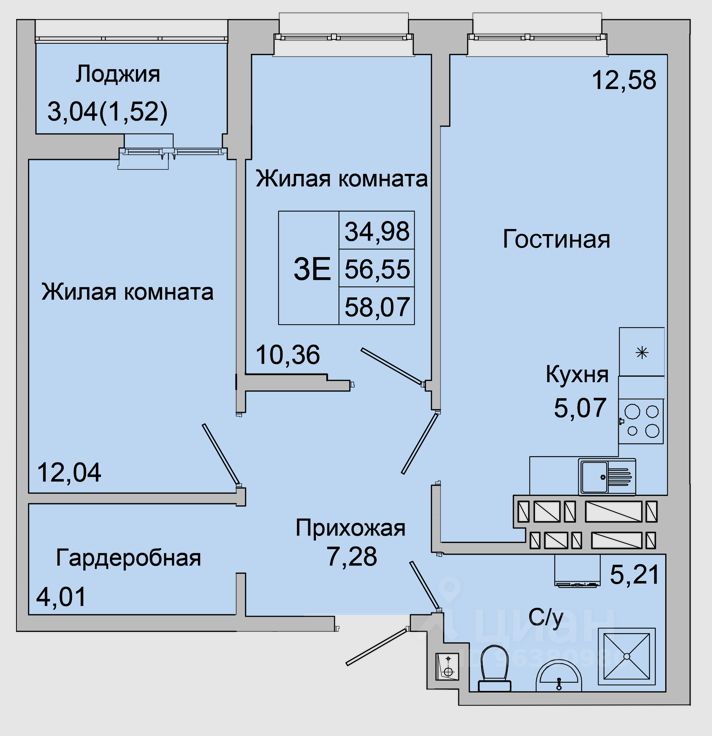 58 м² · Этаж 17 из 20