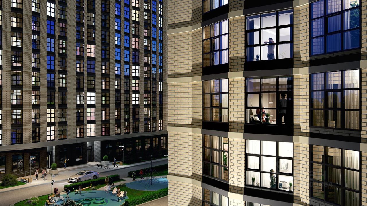 квартиры с интеллектуальными системами управления, умные домофоны с распознаванием лиц собственный парк площадью 35 000 кв.м. придомовая территория поделена на функциональные, природные и детские зоны строительство с использованием технологии вентилируемого фасада и архитектурной подсветкой