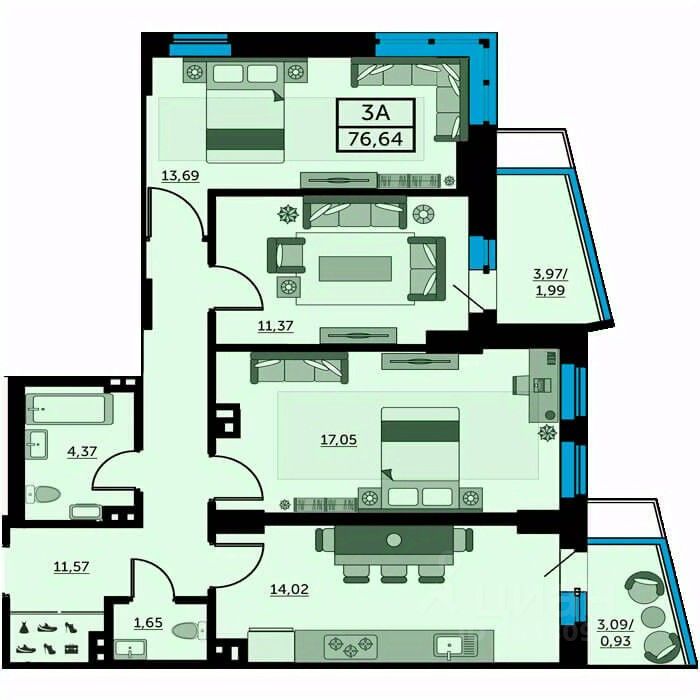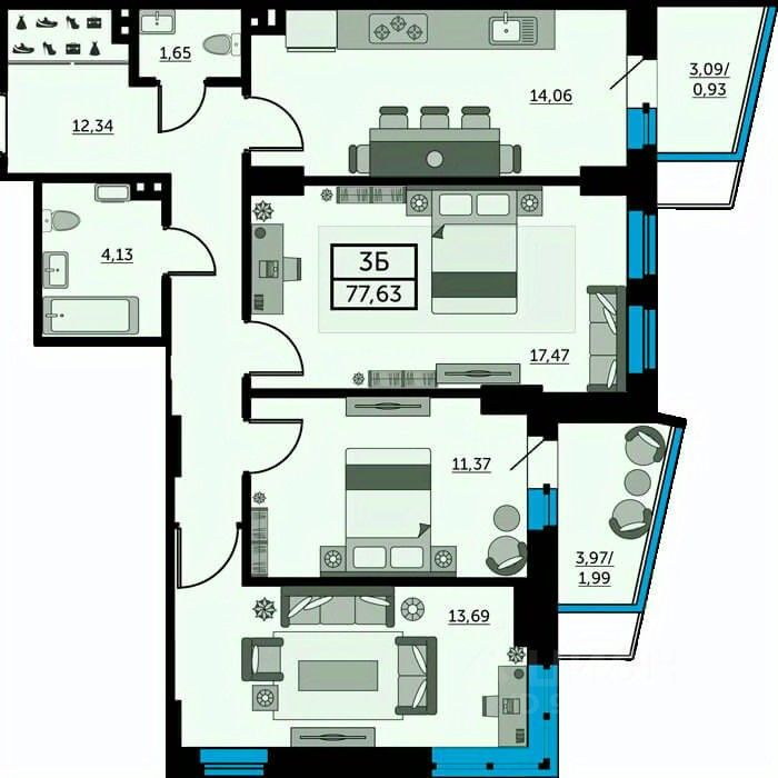 Продаётся 3-комнатная квартира в строящемся доме (Позиция 3), срок сдачи: IV-кв. 2025, общей площадью 75.98 кв.м., на 3 этаже. Жилой комплекс ''Донской Арбат'' от Московской Строительной Компании расположен по адресу г. Ростов-на-Дону, пр-кт Кировский, д. 89. Транспортная доступность Две центральные улицы - Красноармейская и Большая Садовая - находятся в пяти минутах езды. Удобная транспортная развязка позволит уехать в нужное вам место быстро и комфортно. Активный отдых возле дома На территории комплекса есть все для активного образа жизни: футбольное поле, несколько спортивных и детских площадок. В шаговой доступности - бассейн и стадион. Приятным дополнением является расположение рядом ''Ростовского ипподрома''. Комфорт в каждой детали Ощутите все плюсы недвижимости класса ''Комфорт+,''. Дома с бесшумными лифтами, дизайнерской отделкой входных групп, скрытыми нишами для кондиционеров, просторными планировками, панорамным остеклением балконов и лоджий. Идеальное местоположение Уникальная локация в центральной части Ростова-на-Дону позволяет быстро добираться в любой район города и в то же время - наслаждаться спокойной, неторопливой жизнью в стороне от оживленных магистралей.