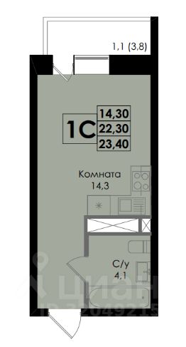 1-к квартира Показать на карте