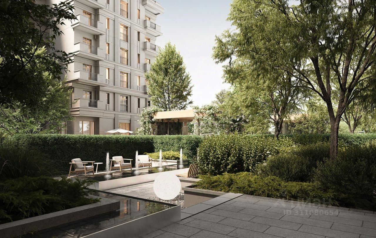 Цветущий двор-сад на 3600 кв.м. Двор-сад наполнен множеством цветущих растений, крупномерными деревьями и вечнозелеными кустарниками, чтобы вид из окна в любое время года радовал резидентов. Прогулочные аллеи, фонтан, зеленые комнаты, водопад возле собственной библиотеки, мягкие зоны отдыха c дизайнерской мебелью продолжают концепцию спокойствия и тишины в центре города. Активная зона с детскими и спортивными площадками будет удалена от окон квартир, чтобы исключить возникновение дискомфорта из-за шума.