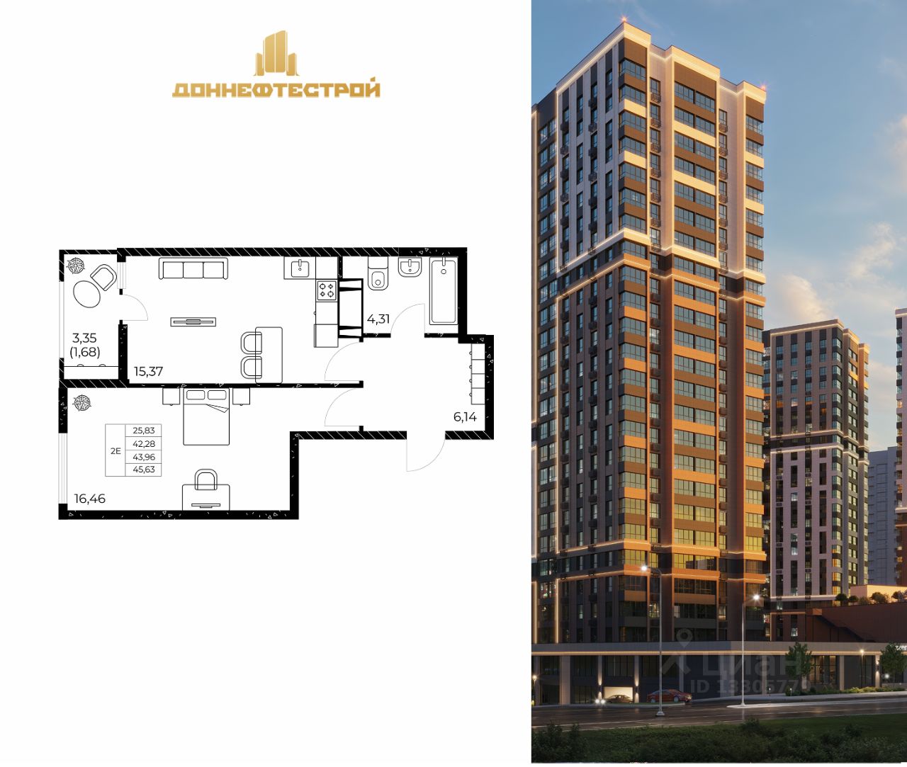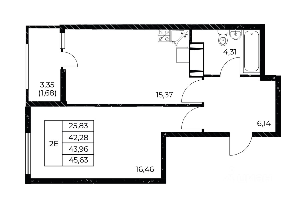 Общая площадь45,63 м2