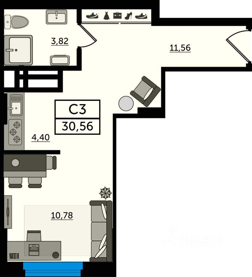 Продаётся студия в строящемся доме (Поз. 13), срок сдачи: IV-кв. 2025, общей площадью 30.56 кв.м., на 15 этаже. Новый жилой комплекс ''Легенда Ростова'' от Московской строительной компании расположен по адресу г. Ростов-на-Дону, проспект Михаила Нагибина.
