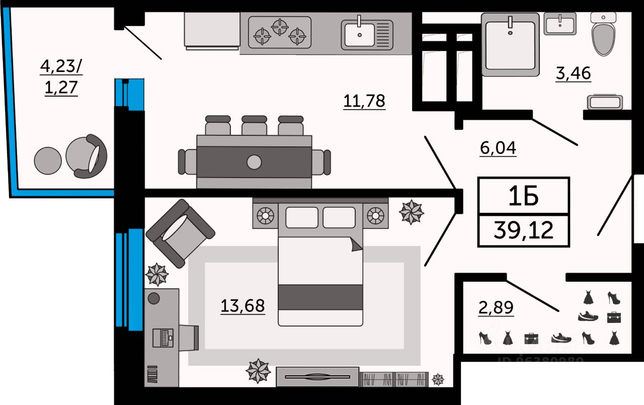 Общая площадь39,46 м2