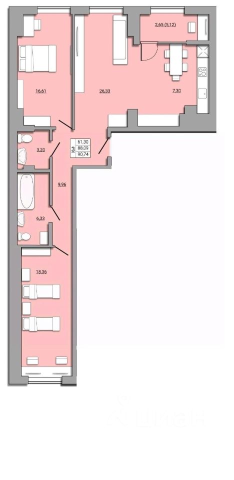 Продаётся 3-комнатная квартира в сданном доме (Береговая, 73с1 (Позиция 2)), срок сдачи: III-кв. 2022, общей площадью 91.38 кв.м., на 12 этаже. Начались продажи нового жилого комплекса ''Державинский'', строительство которого ведется по адресу г. Ростов-на-Дону, ул. Береговая, 73.