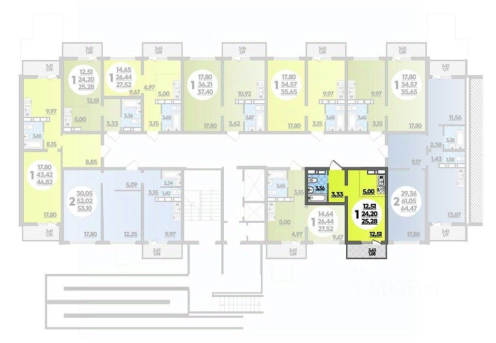 Продаётся студия в строящемся доме (Дом 13), срок сдачи: IV-кв. 2025, общей площадью 25.28 кв.м., на 7 этаже.