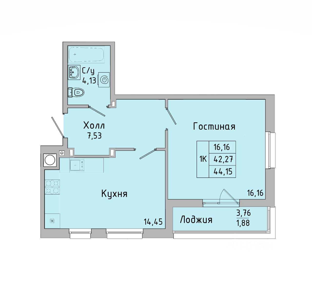 Общая площадь42,2 м2