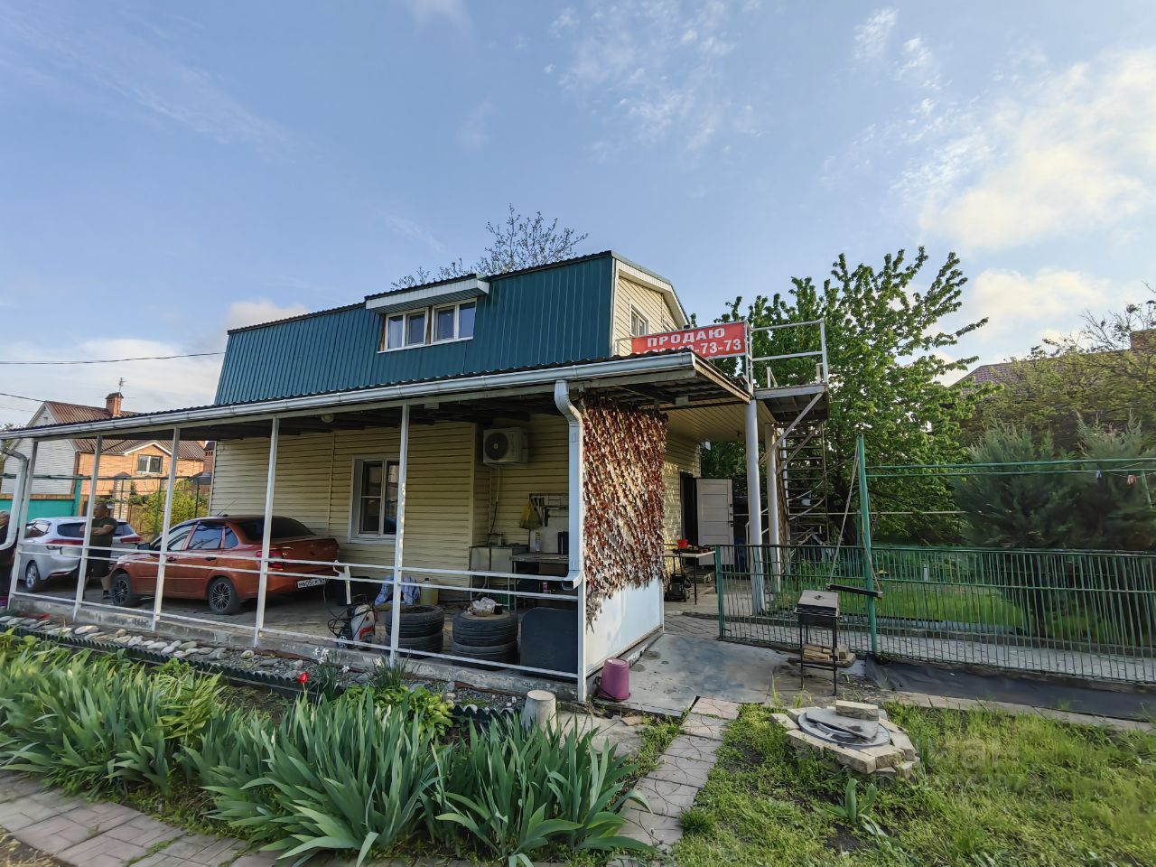 У дома есть два отдельных входа - ОСНОВНОЙ и на второй этаж через террасу по удобной винтовой лестнице.