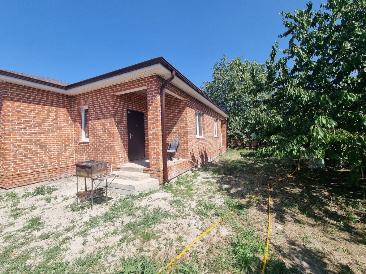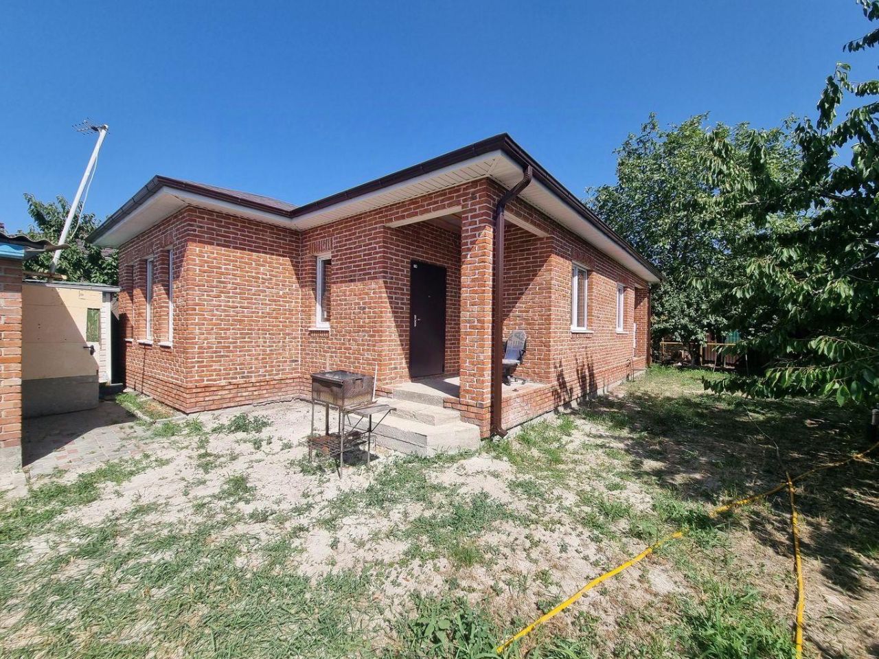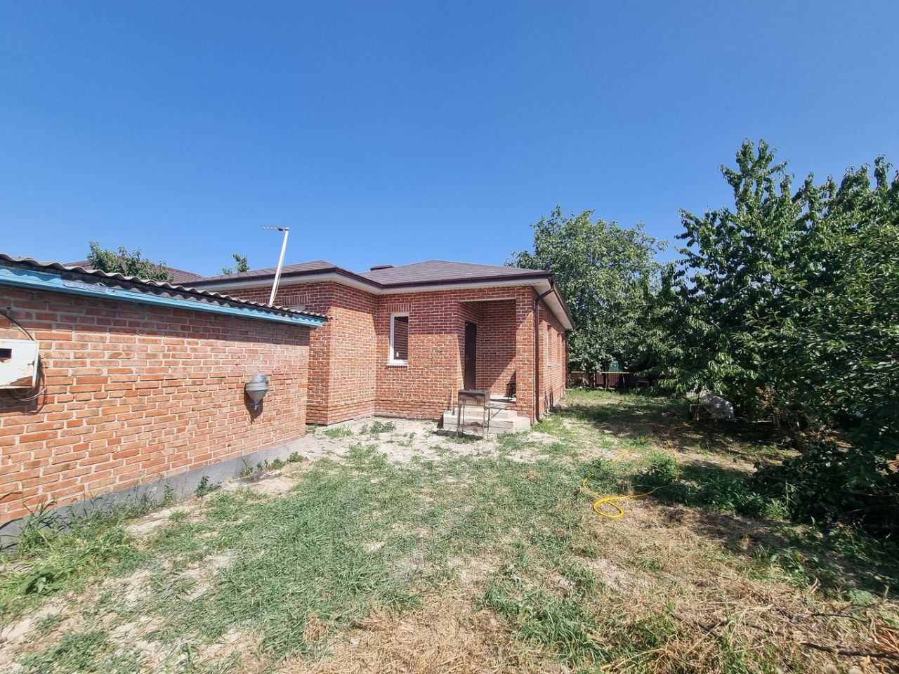 Дом расположен в тихом живописном месте. Собственник строил для себя, но решил продать. Качественные все материалы. Застаренный кирпич с белым цементом, надёжный ленточный фундамент, мягкая кровля (дождь и град в доме не слышны). При входе в дом удобное крыльцо 3м2, терраса 15 м2 с выходом из кухни. Большая сливная яма, газовое отопление, электричество и водяная скважина. Участок ровный, 6-соток 20Х30, есть много плодовых деревьев и кустарников. Документы полностью в порядке, один взрослый собственник. Рассматриваются варианты покупки через ипотеку, сертификаты, господдержку и т.д.