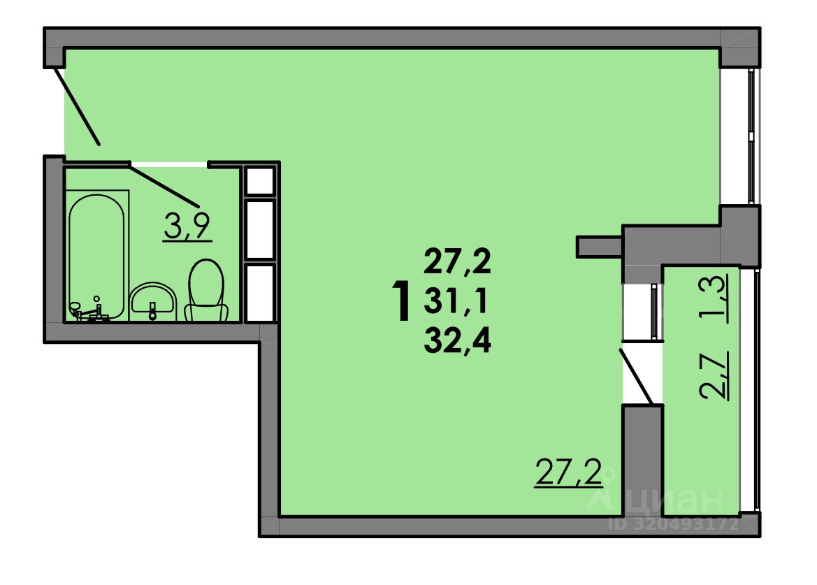 Общая площадь32,25 м2