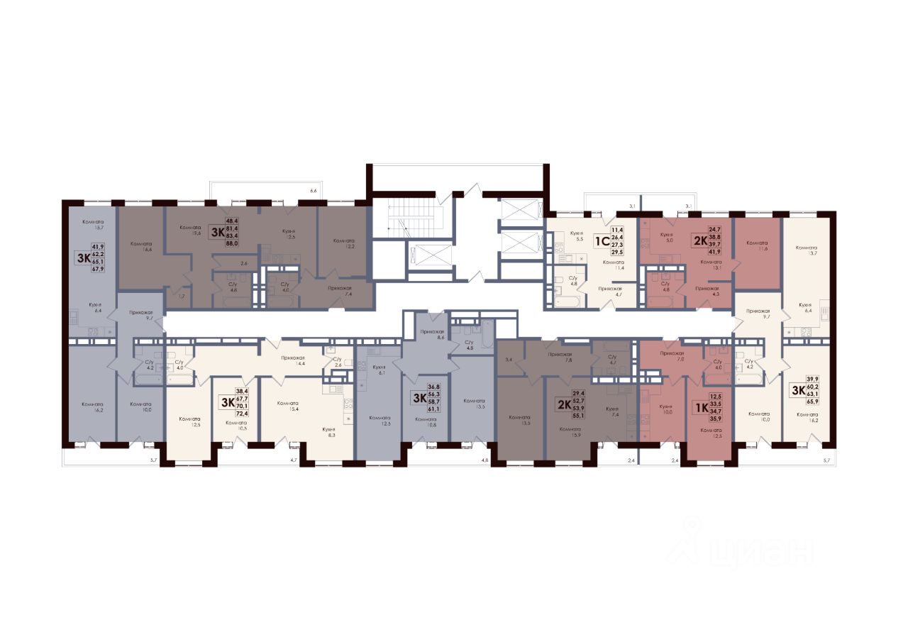 Жилая площадь11,4 м2