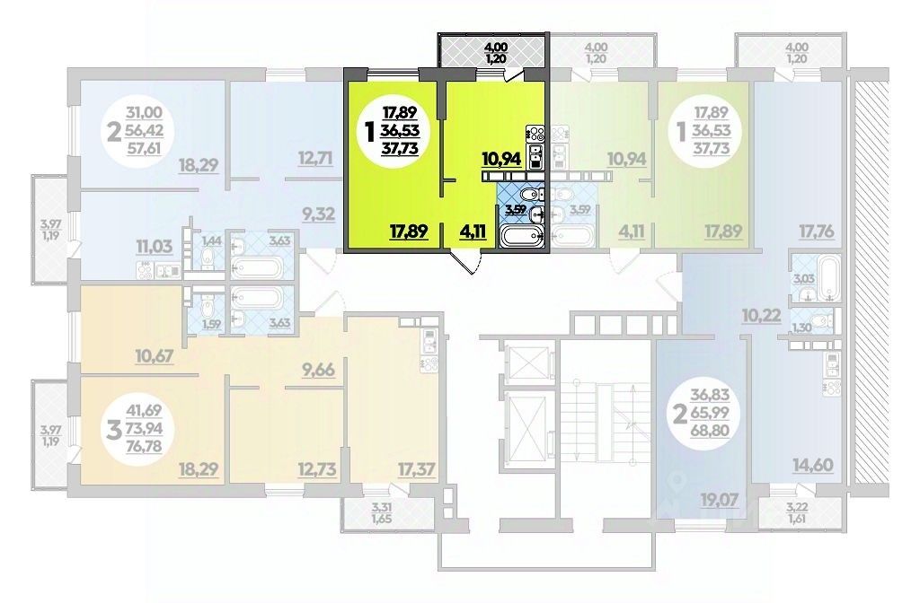 Общая площадь37,73 м2