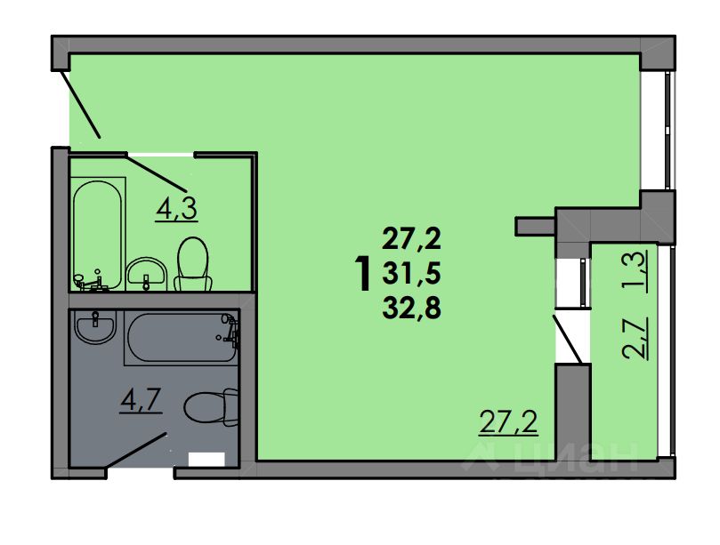 Общая площадь32,8 м2