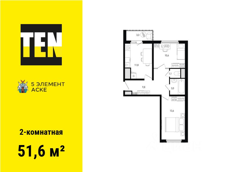 продам 2-к, Солженицына проспект, 13/77 961 880 ₽