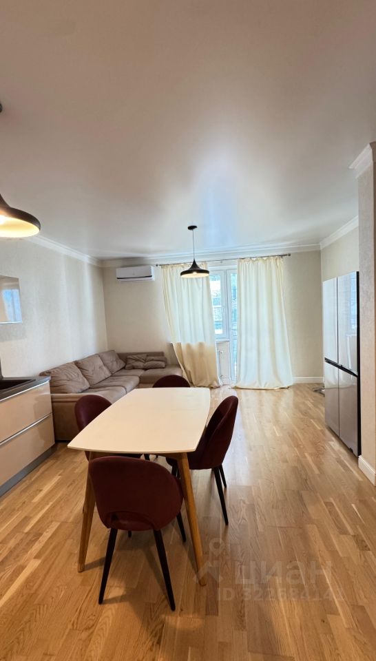 Квартира привлекает своим современным ремонтом и уютной атмосферой. В комнатах и на кухне есть необходимая мебель. Установлена современная бытовая техника: кондиционер, холодильник, посудомоечная машина, телевизор и стиральная машина. Планировка включает одну лоджию и один балкон, что позволяет наслаждаться свежим воздухом. Совмещенный санузел оборудован ванной.