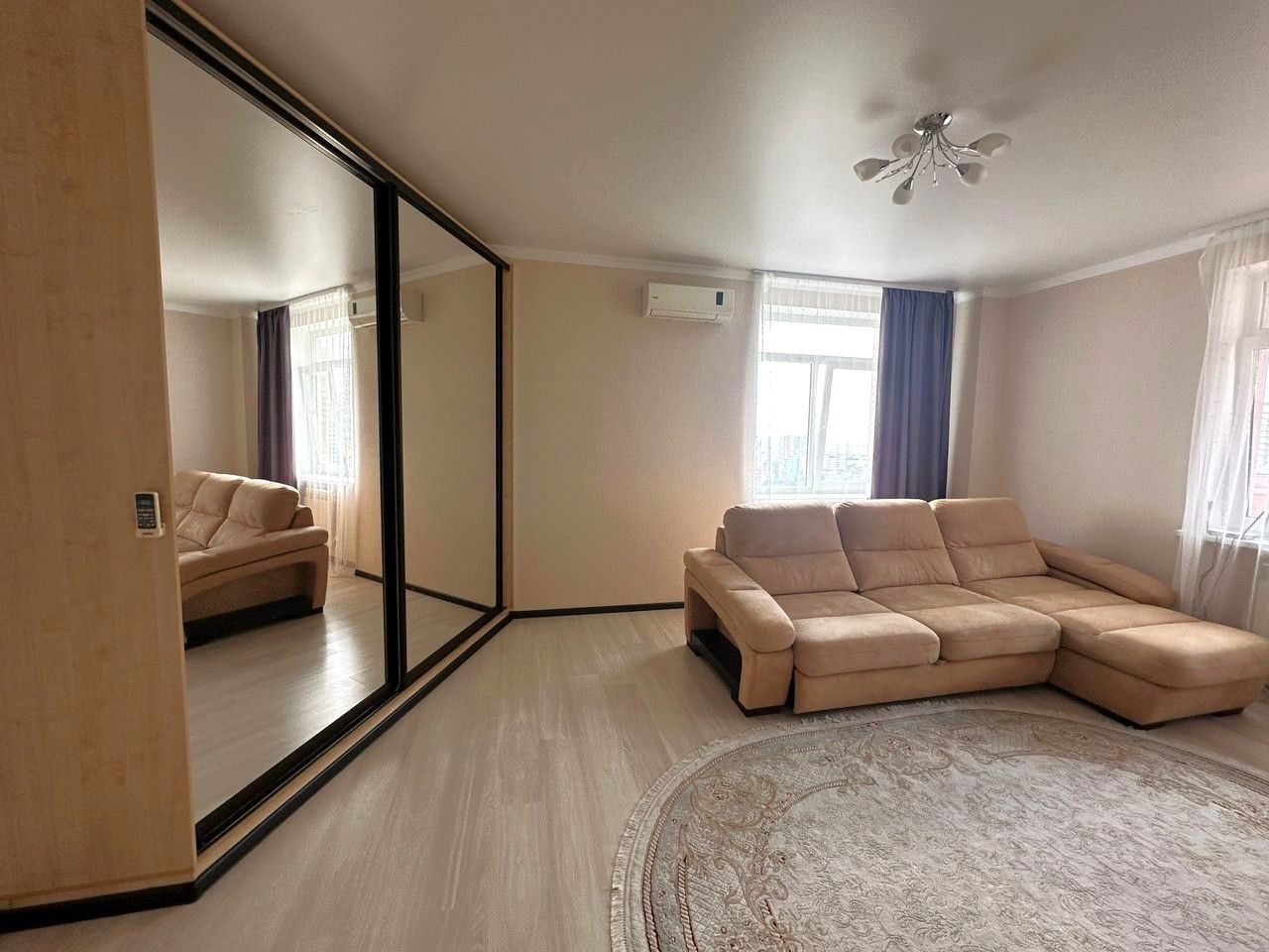Сдается однокомнатная квартира в 19-ти этажном кирпичном доме. Квартира расположена на 18 этаже. Просторная, светлая, площадь 50 кв.м, с балконом. Ремонт свежий, мебель имеется. На все интересующие вопросы отвечу по телефону